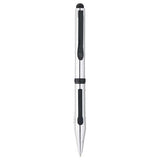Exclusive elleven™ design features a distinctive shiny chrome upper finish with striking black accents. The intricate triple panel grip allows for ease of comfort and writability. Soft, rubber stylus is ideal for navigating on iPads, iPhone, Androids and other touchscreen devices. Pen includes premium blue ballpoint ink cartridge. elleven™ gift box is included.